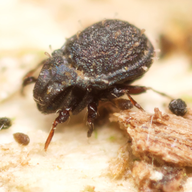 毎日毎日ダニばかりでブログのアクセス数も減っております(^^;;しかし!懲りずに続けていきます。今回は初見のイブシダニと思しきもの。林床に転がる朽木にいました。クチクラに黄色いゴミのようなもの(胴背毛)が着いているタイプです。